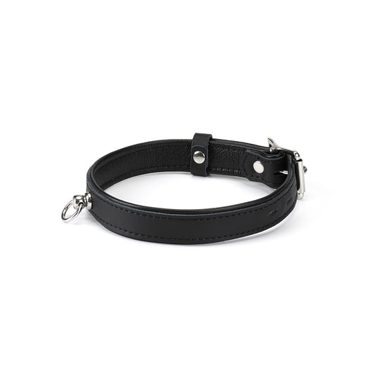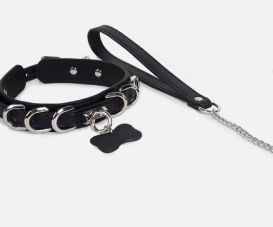 Genuine Leather Black BDSM Collar and Leash O Ring Collar