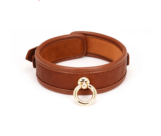Premium Brown Leather Collar and Leash for Adults Dominatrix Collar