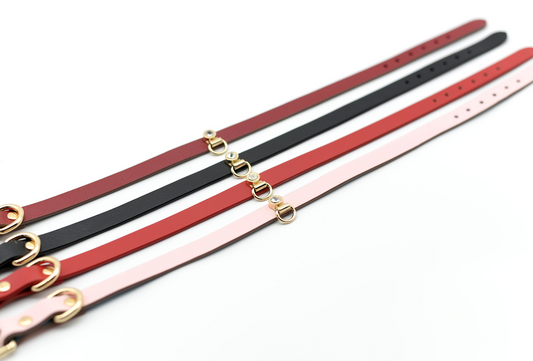 Our collection of leather collars are designed for the submissives. From bondage collars to discreet day collars, we offer a range of human leather collars and leashes. Embrace your sensuality with our sex slave collars and BDSM day collars, perfect for those seeking to explore their submissive play.