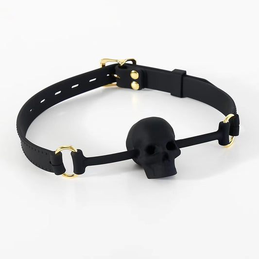 Silicone Human Skull Mouth Gag for Sex with Lockable Leather Strap
